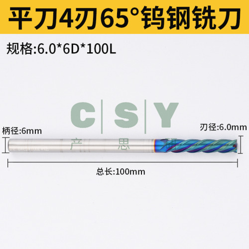 "65度4刃钨钢铣刀纳米蓝平刀钨钢合金铣刀数控刀具加工中心立铣刀-平刀 6.0*6D*100L"商品可能已被商家删除,您可查看其他相似商品!
