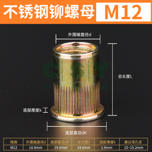 "拉铆螺母铆螺母拉母拉卯螺母拉帽平头304不锈钢M3M4M5M6M8M10M12-平头铆螺母M12 (10个)"商品可能已被商家删除,您可查看其他相似商品!