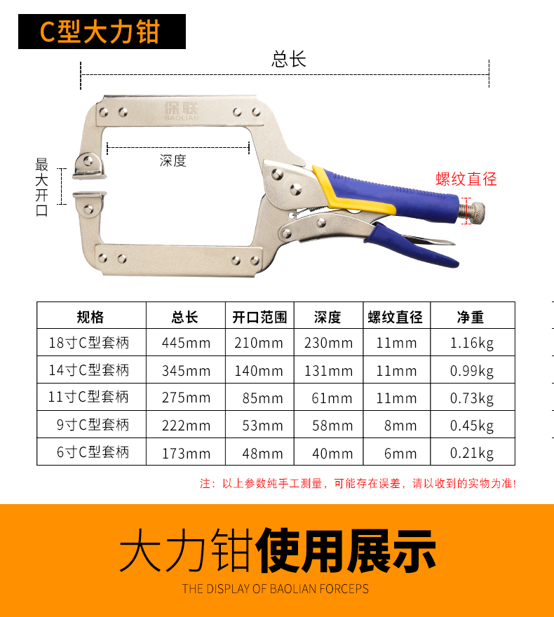 "保联大力钳多功能钳子重型工业级加力钳固定压力c型手动管钳夹钳-C型胶柄大力钳 18寸"商品可能已被商家删除,您可查看其他相似商品!