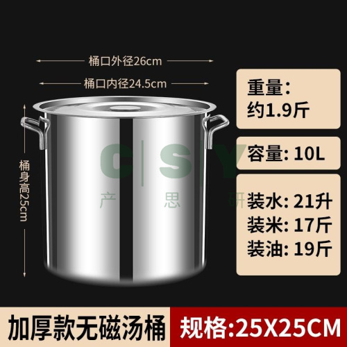 "304不锈钢桶圆桶带盖商用汤桶烧水桶卤桶炖锅大容量加厚家用汤锅-【加厚款】直径25高25-容量约10L"商品可能已被商家删除,您可查看其他相似商品!