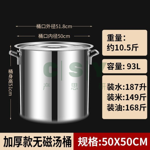 "304不锈钢桶圆桶带盖商用汤桶烧水桶卤桶炖锅大容量加厚家用汤锅-【加厚款】直径50高50-容量约90升"商品可能已被商家删除,您可查看其他相似商品!