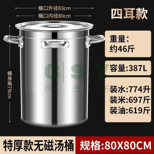 "304不锈钢桶圆桶带盖商用汤桶烧水桶卤桶炖锅大容量加厚家用汤锅-【超厚款】四耳直径80高80"商品可能已被商家删除,您可查看其他相似商品!