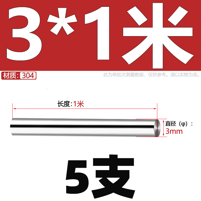 "1.5/2/3/4/5-24mm 304不锈钢棒钢材圆棒圆钢钢棍棒材直条光圆加工-∮3*1米-5支"商品可能已被商家删除,您可查看其他相似商品!