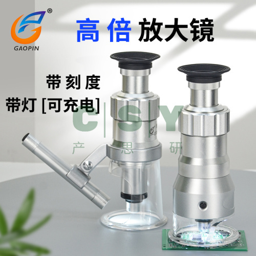 "高品GP2010-100K高倍20/40/60/100倍放大镜显微镜百倍高脚镜专业目镜高清带刻度测量尺印刷网板带灯手持鉴定-60倍带刻度 带灯电池款 放大镜"商品可能已被商家删除,您可查看其他相似商品!