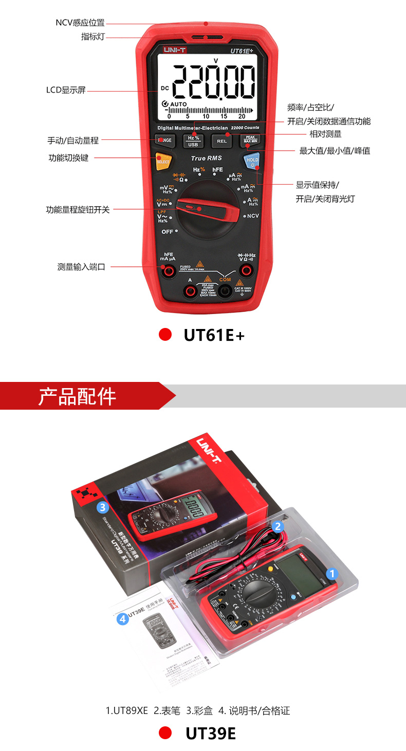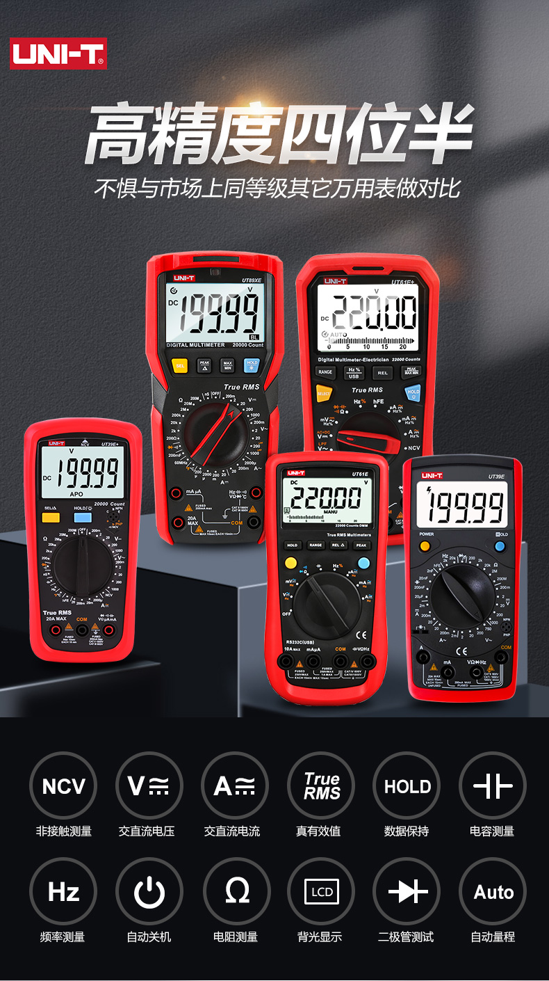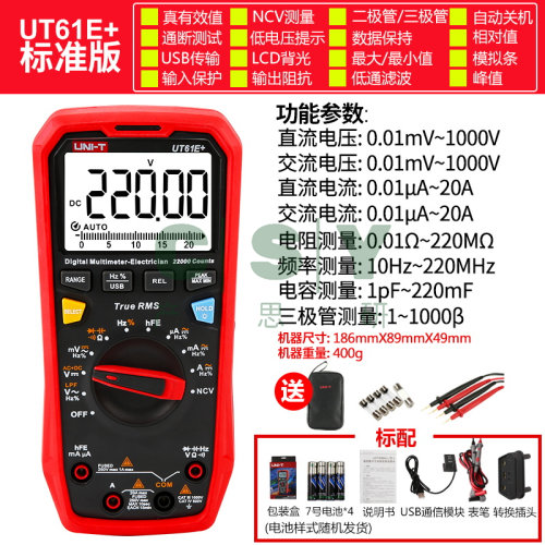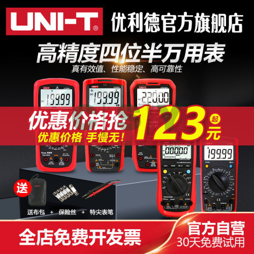 "优利德高精度四位半万用表全档位智能防烧真有效值万能表自动量程-UT61E+(官方标配)送布包+特尖表笔+5个保险丝"商品可能已被商家删除,您可查看其他相似商品!