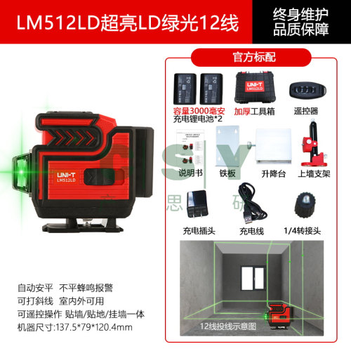 "优利德LM508LD激光水平仪绿光强光细线高精度贴地仪激光自动打线-LM512LD(绿光12线)"商品可能已被商家删除,您可查看其他相似商品!
