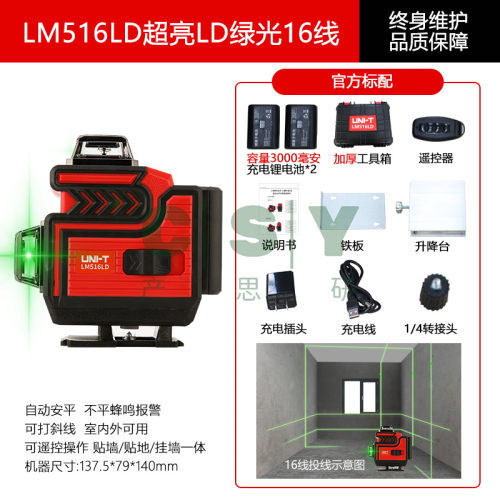 "优利德LM516LD激光水平仪高精度强光细线绿光贴地仪激光自动打线-LM516LD(绿光16线)"商品可能已被商家删除,您可查看其他相似商品!