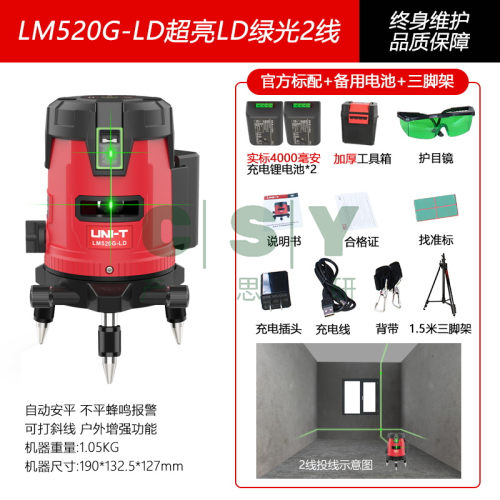 "优利德红外线水平仪高精度强光绿光235线激光自动打线室外平水仪-LM520G-LD(绿光2线)标配+备用电池+三脚架"商品可能已被商家删除,您可查看其他相似商品!