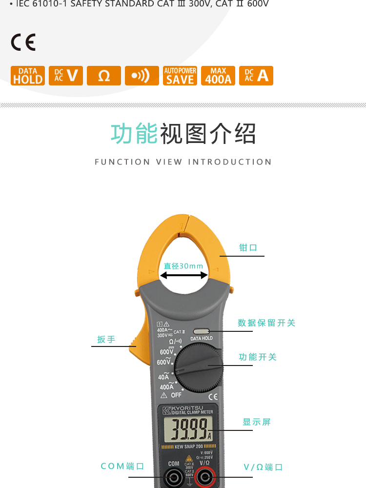 "日本共立/克列茨(KYORITSU)KS200/203 数字式钳形表-200 (交流400A/交直流600V)"商品可能已被商家删除,您可查看其他相似商品!