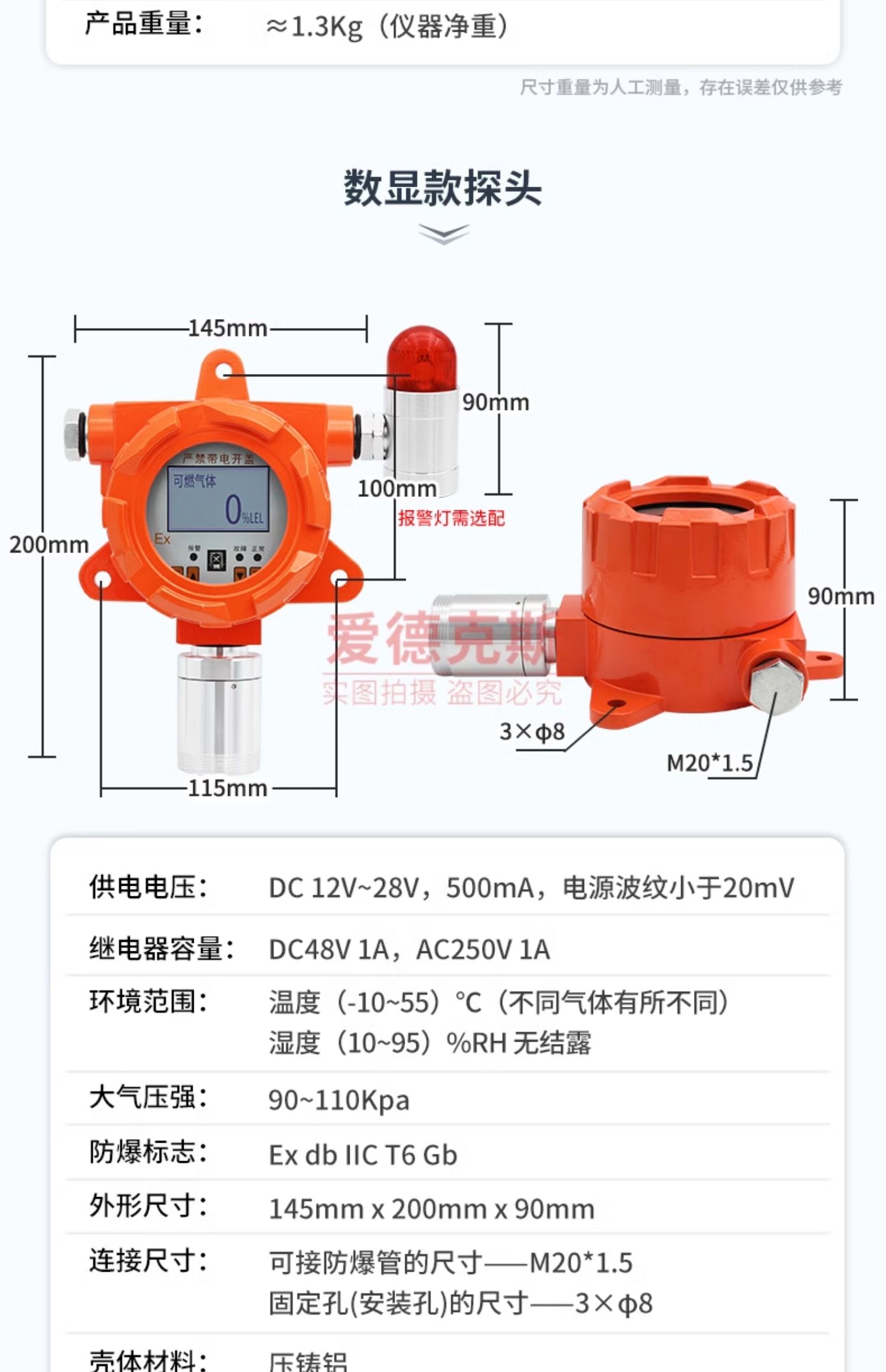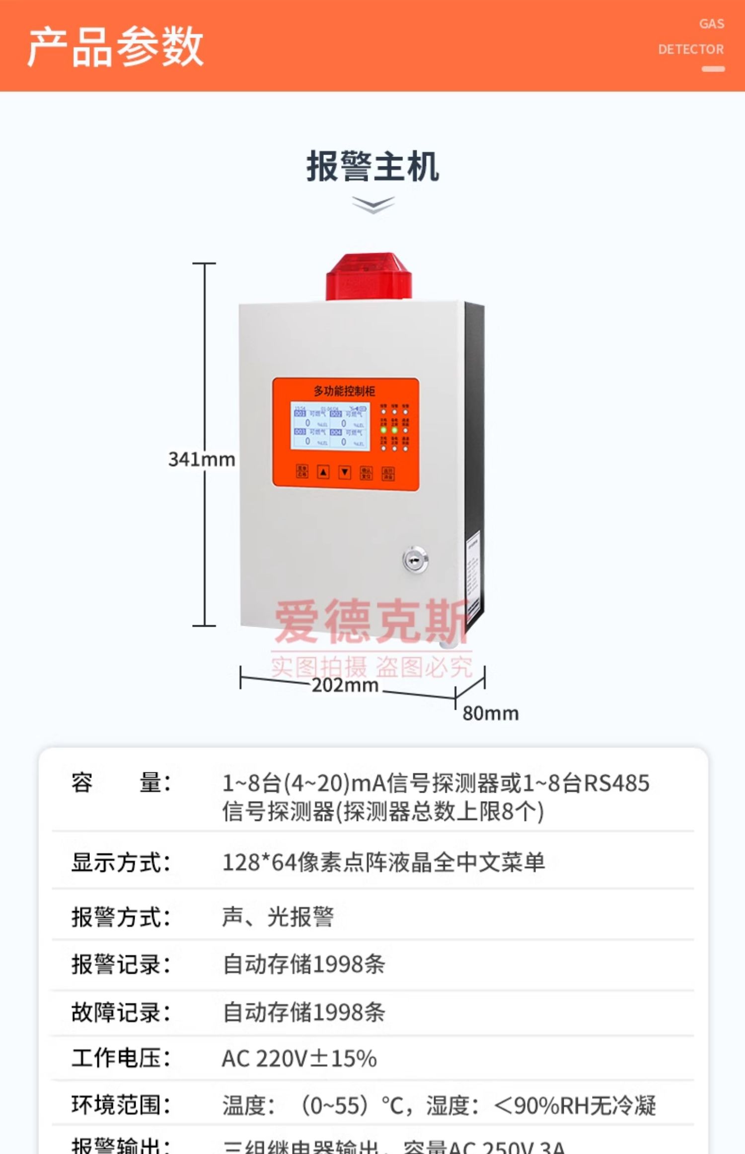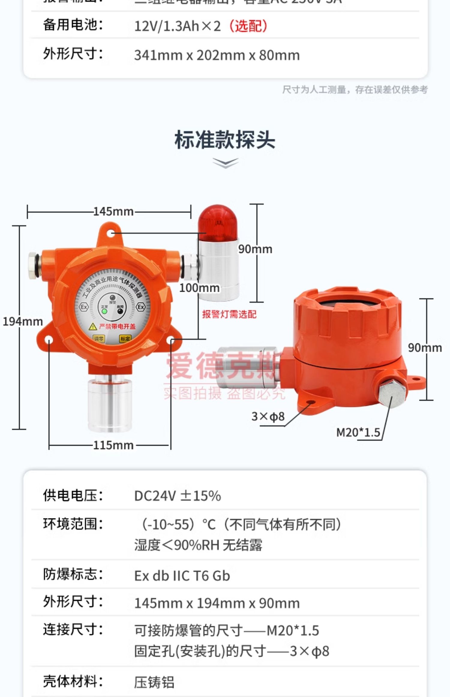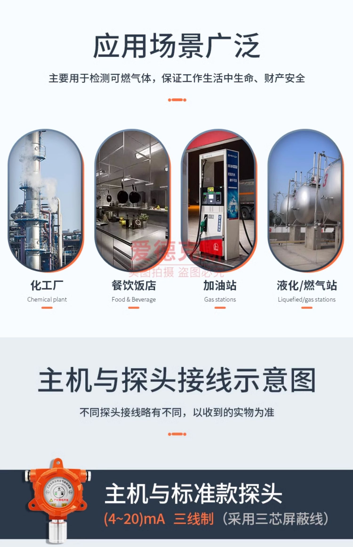 可燃气体报警器工业商用天然气油漆氧气硫化氢氢气氨气泄漏探测