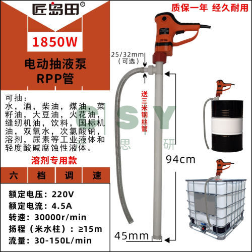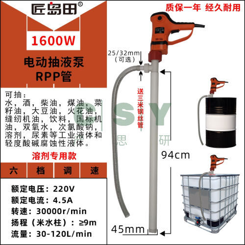 "电动插桶泵车用尿素抽液泵手提柴油煤油水抽油泵耐腐蚀酸碱油桶泵-850W配RPP化工泵;1983475:37132755542:额定功率:功率选项图都有标"商品可能已被商家删除,您可查看其他相似商品!