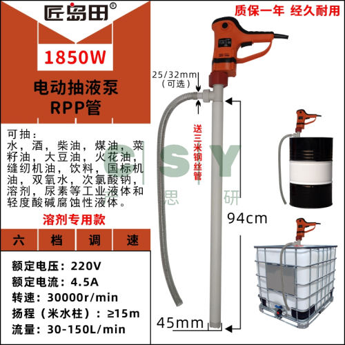 "电动插桶泵车用尿素抽液泵手提柴油煤油水抽油泵耐腐蚀酸碱油桶泵-1850W配RPP化工泵;1983475:37132755542:额定功率:功率选项图都有标"商品可能已被商家删除,您可查看其他相似商品!