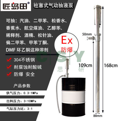 "超粘稠气动插桶泵胶水泵AES磺酸抽液泵 防爆汽油甲醇酒油抽溶剂泵-7.5kw;1627207:13661544969:颜色分类:JDT-304气动抽液泵"商品可能已被商家删除,您可查看其他相似商品!
