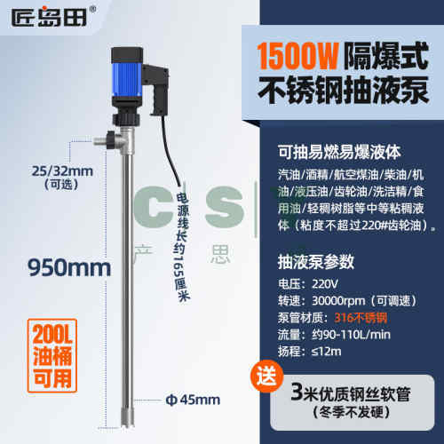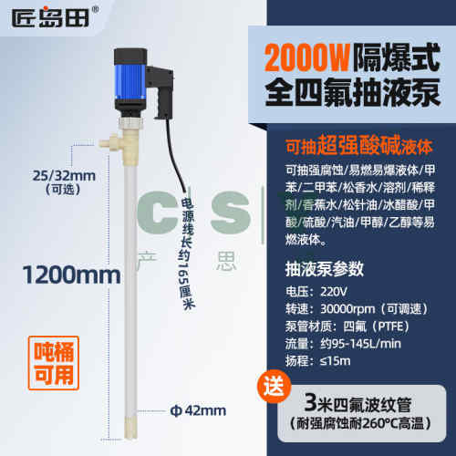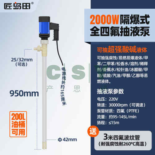 "电动化工抽液泵耐酸碱抽酸泵防腐蚀四氟塑料管油桶泵手提式抽油泵-单独一条四氟乙烯管95CM;1983475:7444409:额定功率:4000W"商品可能已被商家删除,您可查看其他相似商品!