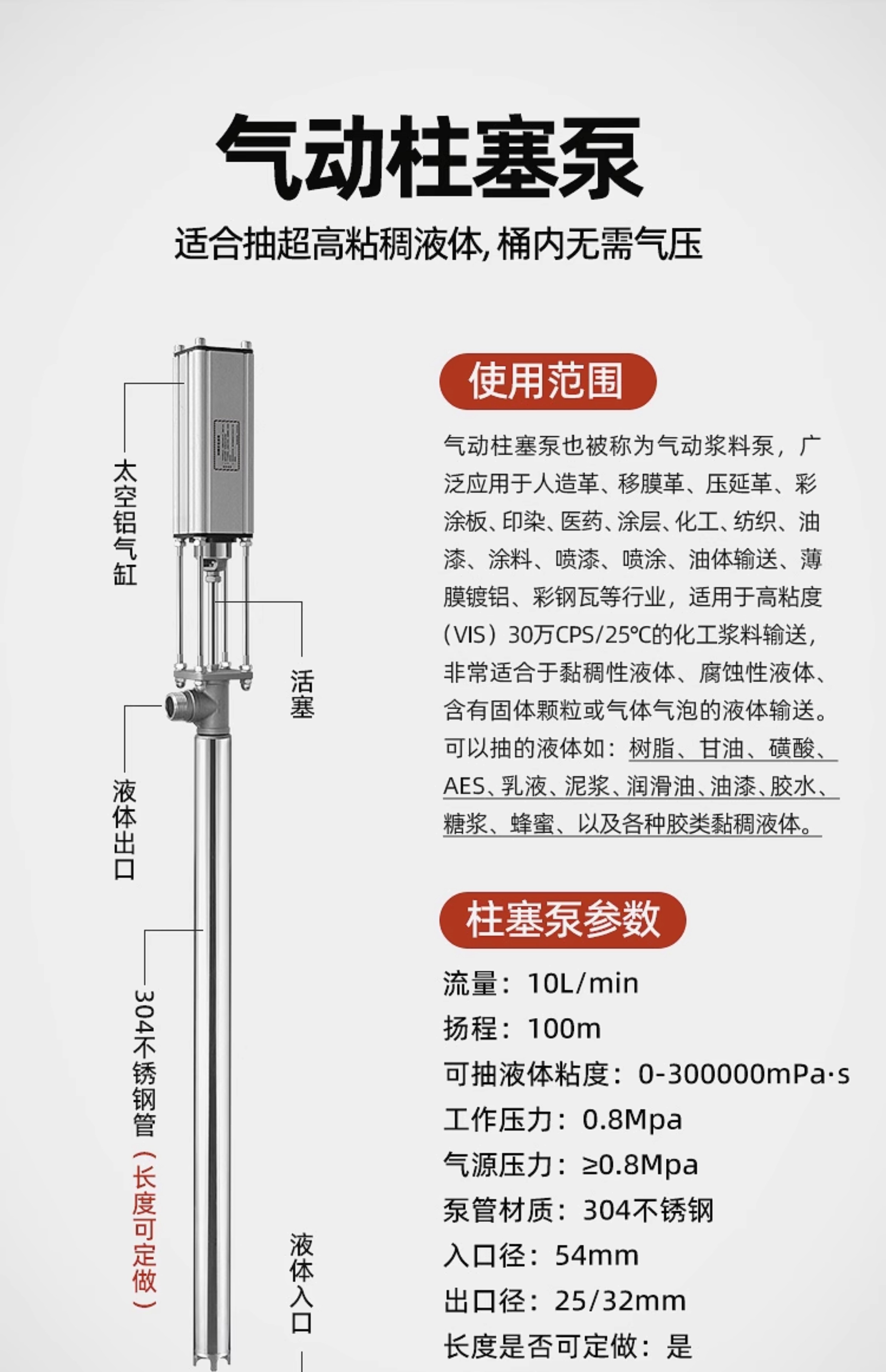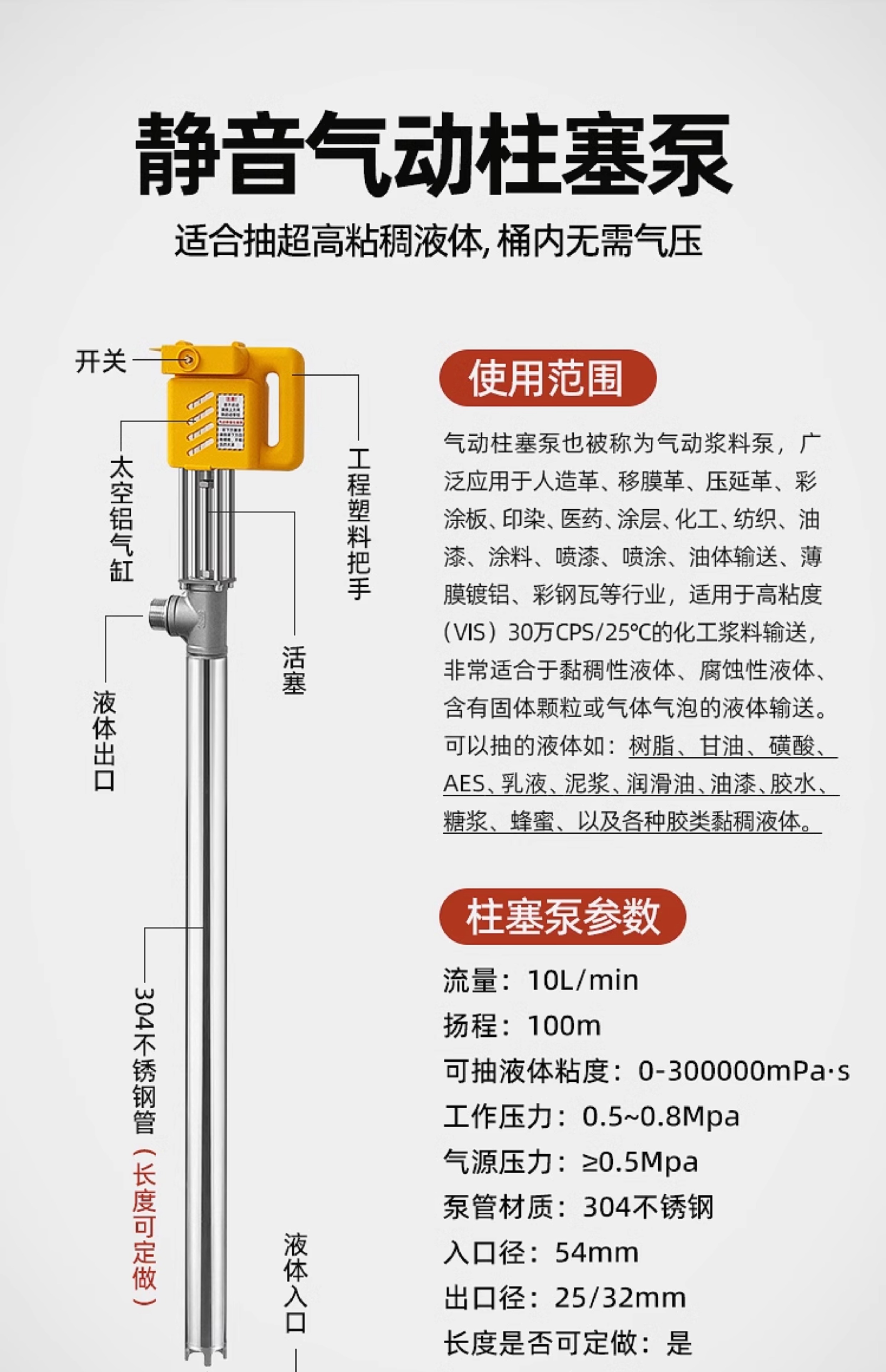 "气动静音抽液泵超粘超稠胶水磺酸AES蜂蜜柱塞泵 溶剂酒精汽油防爆-JDT-EXQ-SUS304静音30全钢管(68厘米长)"商品可能已被商家删除,您可查看其他相似商品!