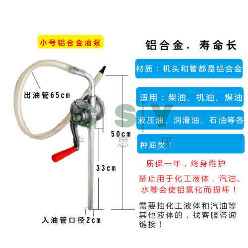 "手摇抽油泵耐腐蚀酸碱抽液泵汽油柴油机油插桶泵不锈钢铝合金油泵-小号铝合金手摇油泵"商品可能已被商家删除,您可查看其他相似商品!