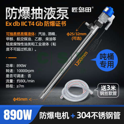 "匠岛田电动防爆防静电抽油器 304不锈钢油桶泵汽油溶剂手提抽液泵-880W防爆抽液泵全钢管1.2米"商品可能已被商家删除,您可查看其他相似商品!