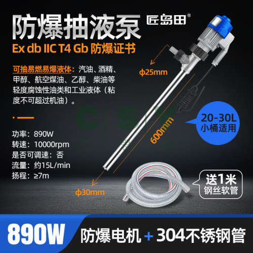"匠岛田电动防爆防静电抽油器 304不锈钢油桶泵汽油溶剂手提抽液泵-880W防爆抽液泵全钢管60厘米"商品可能已被商家删除,您可查看其他相似商品!