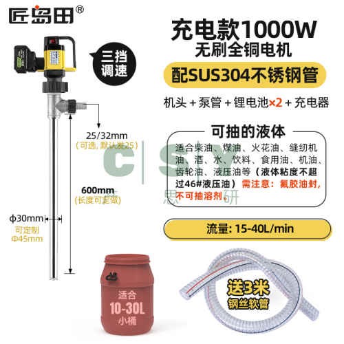 "锂电池电动抽油泵柴油抽油机汽油加油神器溶剂油抽子耐酸碱输液泵-JDT-CD1000W-H-30SUS304-60"商品可能已被商家删除,您可查看其他相似商品!