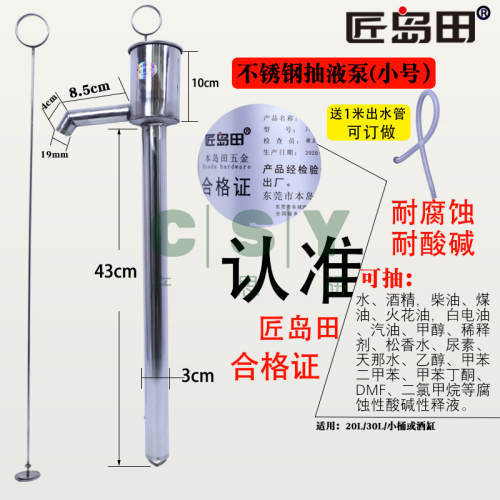 "304不锈钢油抽全铜防爆防静电抽液泵柴油汽油煤油 化工泵油抽子管-不锈钢小号抽液泵"商品可能已被商家删除,您可查看其他相似商品!