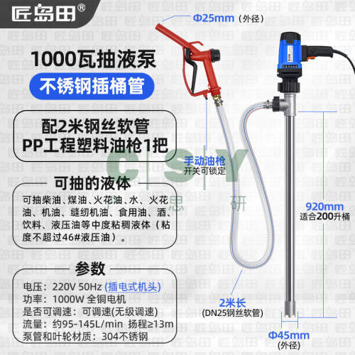 "电动大功率手提抽油泵液压柴油机油24V插桶泵 不锈钢耐腐蚀抽油器-本岛田1000W配全不锈钢管;1983475:34900184004:额定功率:420W-1300W(看选项)"商品可能已被商家删除,您可查看其他相似商品!
