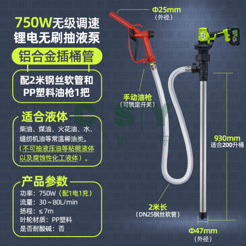 "电动大功率手提抽油泵液压柴油机油24V插桶泵 不锈钢耐腐蚀抽油器-充电款配铝管;1983475:34900184004:额定功率:420W-1300W(看选项)"商品可能已被商家删除,您可查看其他相似商品!