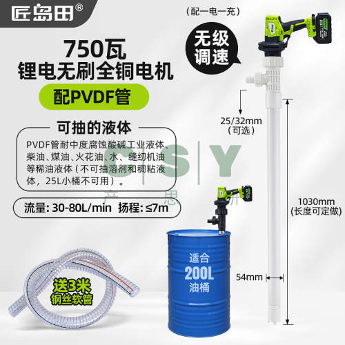 "电动大功率手提抽油泵液压柴油机油24V插桶泵 不锈钢耐腐蚀抽油器-充电1000W的PVDF管;1983475:34900184004:额定功率:420W-1300W(看选项)"商品可能已被商家删除,您可查看其他相似商品!