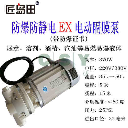 "车用尿素泵电动隔膜泵耐腐蚀酸碱增压化工泵12V24V220V电动抽液泵-防爆型耐腐蚀酸碱电动隔膜泵"商品可能已被商家删除,您可查看其他相似商品!