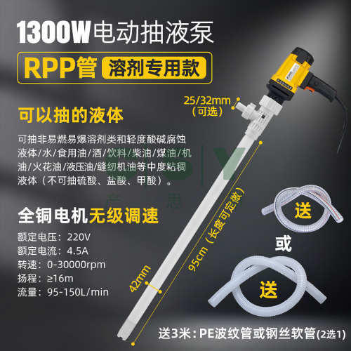 "电动化工抽液泵耐酸碱抽酸泵防腐蚀四氟塑料管油桶泵手提式抽油泵-1300W RPP化工抽油泵;1983475:36526008432:额定功率:功率选项图有标"商品可能已被商家删除,您可查看其他相似商品!