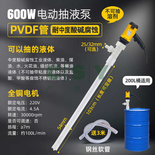 "电动化工抽液泵耐酸碱抽酸泵防腐蚀四氟塑料管油桶泵手提式抽油泵-600W配PVDF耐酸碱管;1983475:36526008432:额定功率:功率选项图有标"商品可能已被商家删除,您可查看其他相似商品!