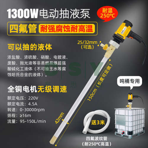 "电动化工抽液泵耐酸碱抽酸泵防腐蚀四氟塑料管油桶泵手提式抽油泵-1300W全四氟耐超强酸碱1.5米长;1983475:36526008432:额定功率:功率选项图有标"商品可能已被商家删除,您可查看其他相似商品!