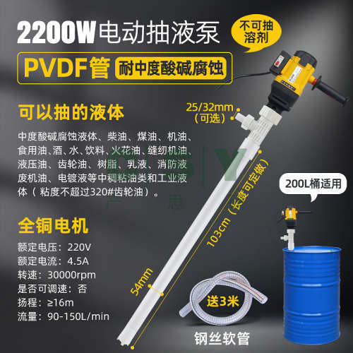 "电动化工抽液泵耐酸碱抽酸泵防腐蚀四氟塑料管油桶泵手提式抽油泵-2200W高扬程大流量款;1983475:36526008432:额定功率:功率选项图有标"商品可能已被商家删除,您可查看其他相似商品!