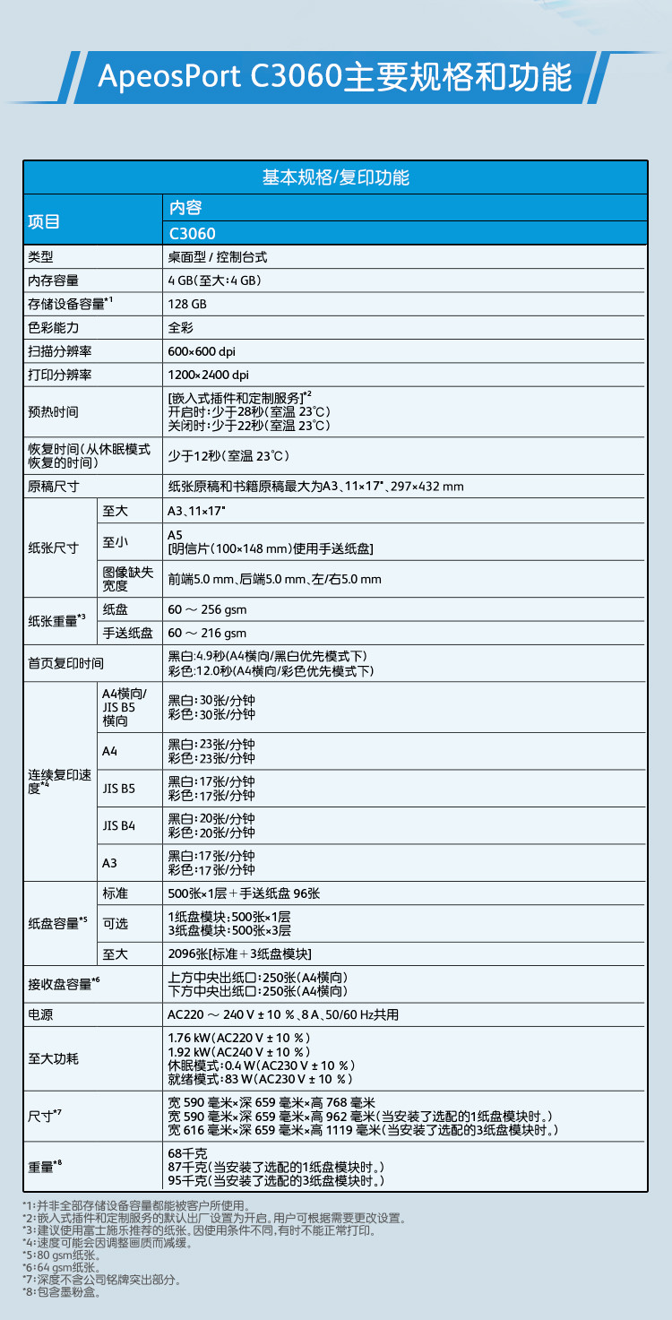 "富士胶片 AP C3060 CPS 彩色复合机a3a4网络彩色激光复印机打印机 四纸盒+A型内置装订+传真"商品可能已被商家删除,您可查看其他相似商品!