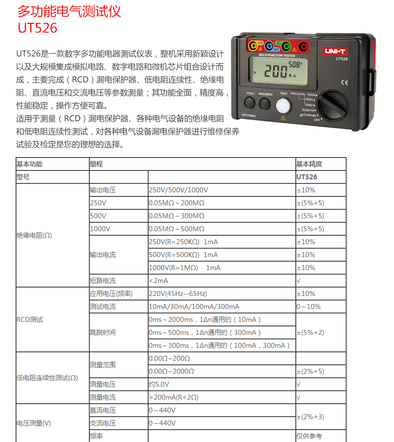 "优利德UT526多功能电气测试仪漏电保护低电阻绝缘电阻电工仪表"商品可能已被商家删除,您可查看其他相似商品!