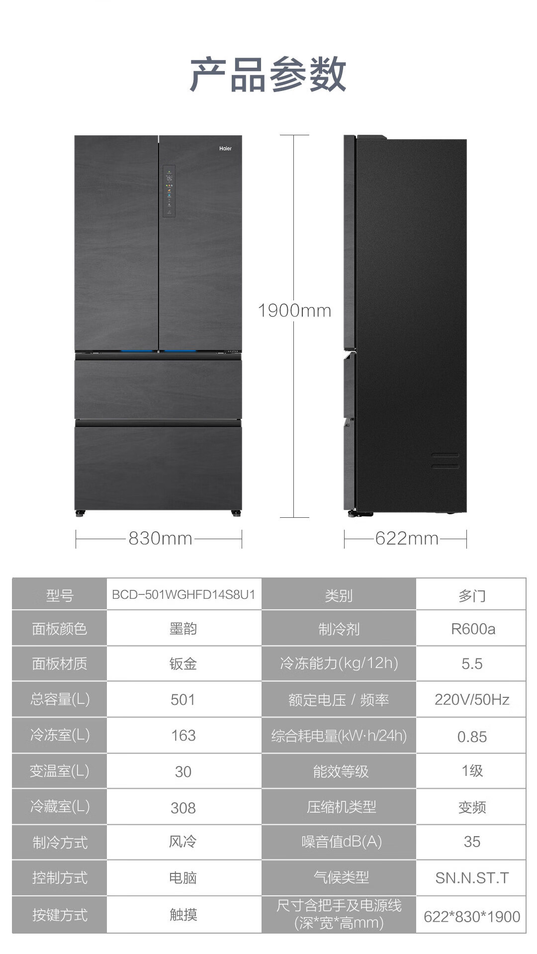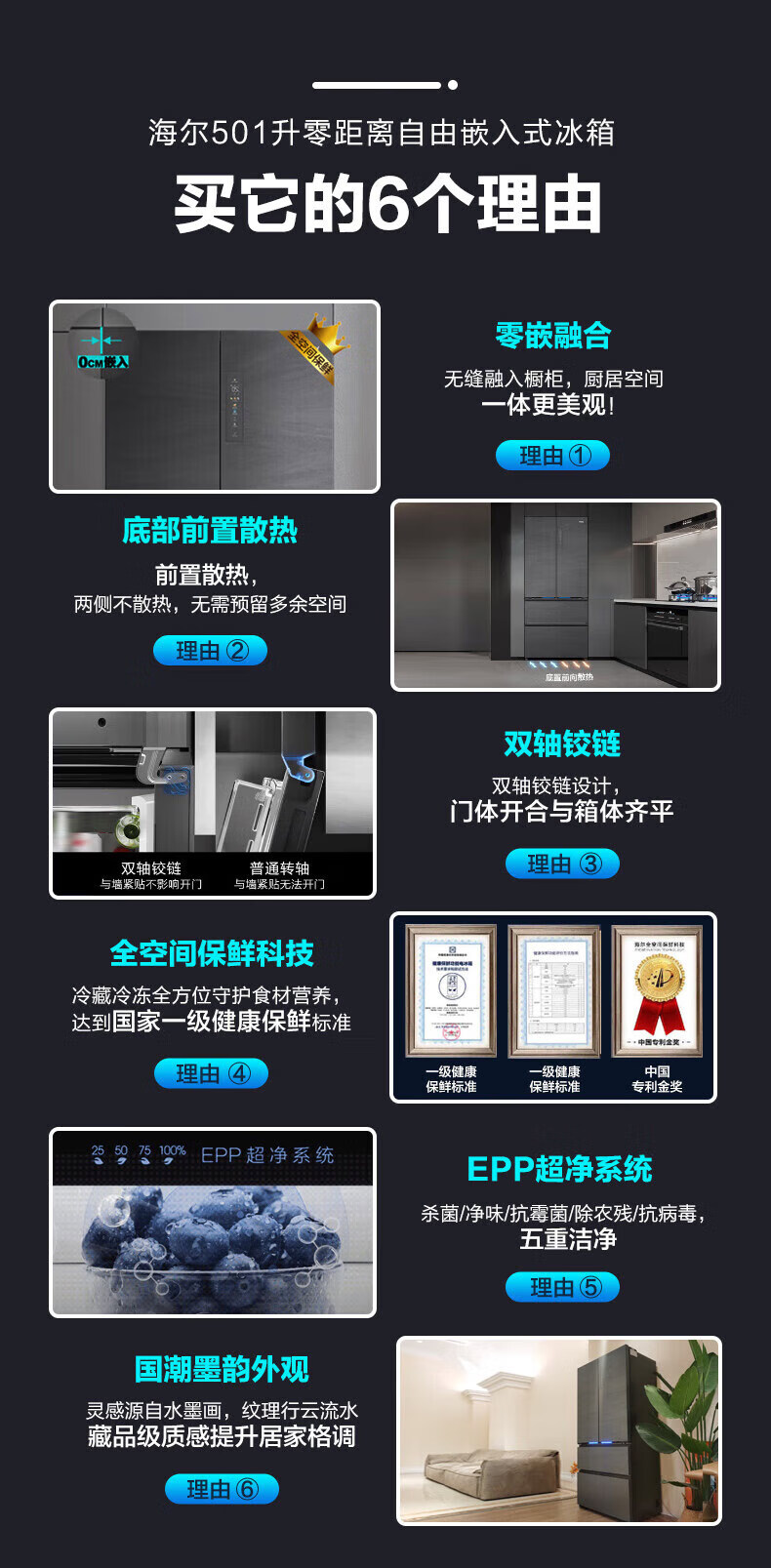 "海尔(Haier)501升全空间保鲜科技零距离自由嵌入式四开多门高效零嵌冰箱变频BCD-501WGHFD14S8U1底部散热超薄"商品可能已被商家删除,您可查看其他相似商品!