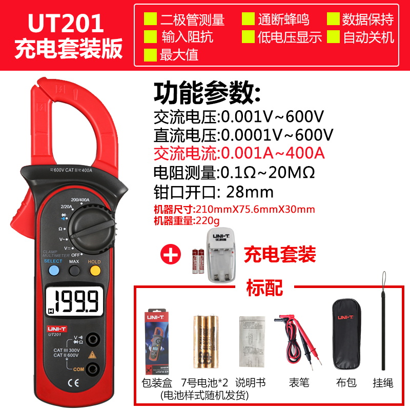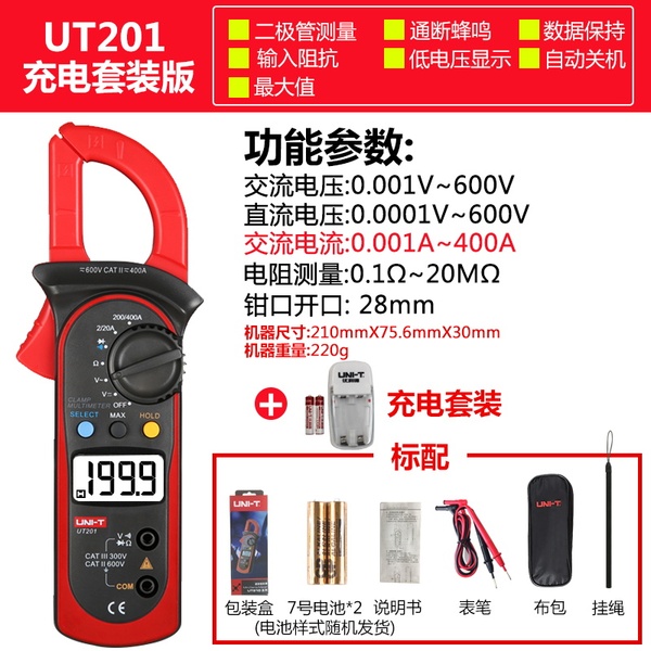 "优利德UT201高精度钳形表数字万用表数显电流表电阻交直流万能表 UT201(充电套装)"商品可能已被商家删除,您可查看其他相似商品!