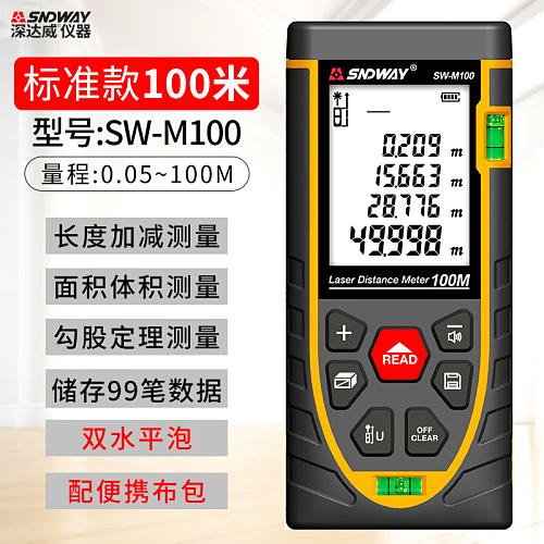 "深达威激光测距仪高精度手持红外线测量尺手持量房尺激光电子尺-100米标准款(双感光孔+双水平泡)"商品可能已被商家删除,您可查看其他相似商品!