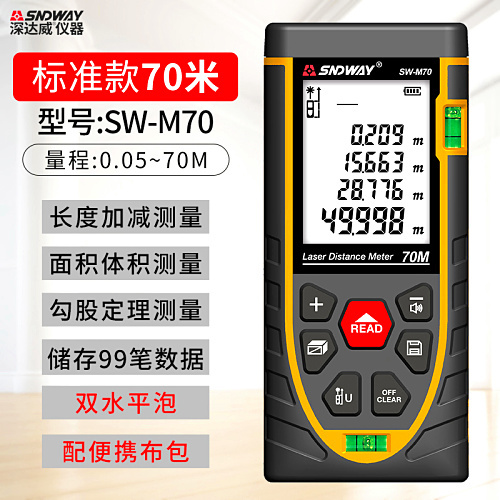 "深达威激光测距仪高精度手持红外线测量尺手持量房尺激光电子尺-70米标准款(双感光孔+双水平泡)"商品可能已被商家删除,您可查看其他相似商品!