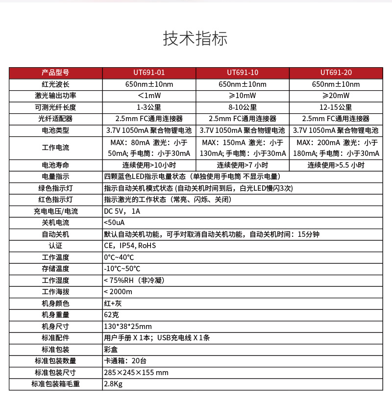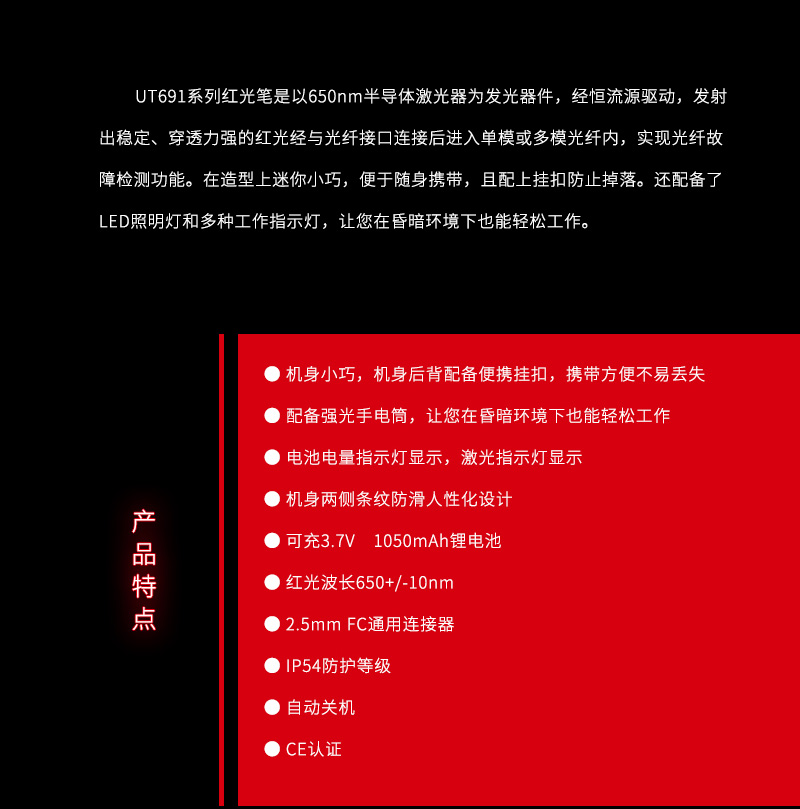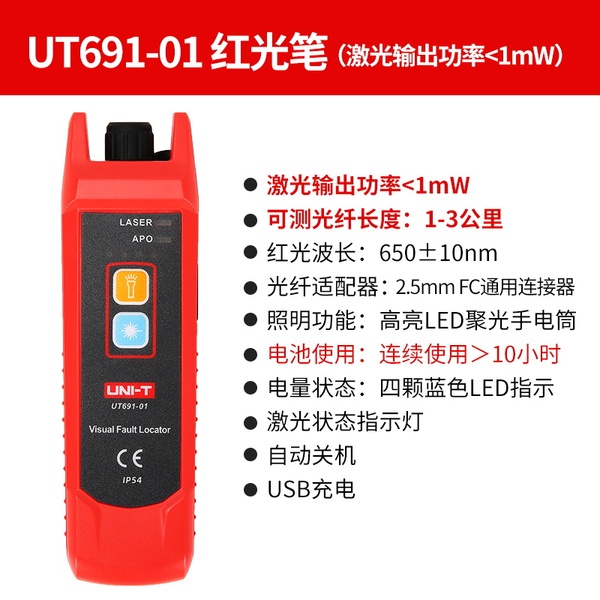 "优利德UT691红光笔15公里光纤测试笔通光笔打光笔红光源测试仪 UT691-01(可测光纤长度1-3公里)"商品可能已被商家删除,您可查看其他相似商品!
