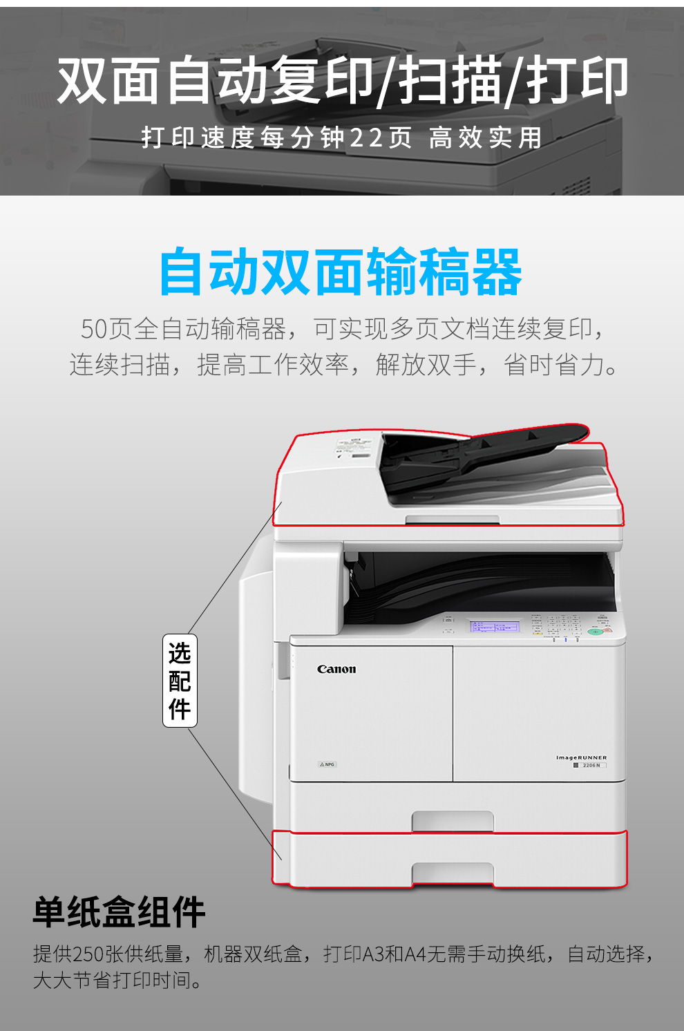 "佳能(Canon)iR2206N/2206AD A3A4黑白复合机无线激光复印机办公扫描打印机一体机 2206AD高配-主机+双面器+输稿器+双纸盒 iR2204系列升级版"商品可能已被商家删除,您可查看其他相似商品!