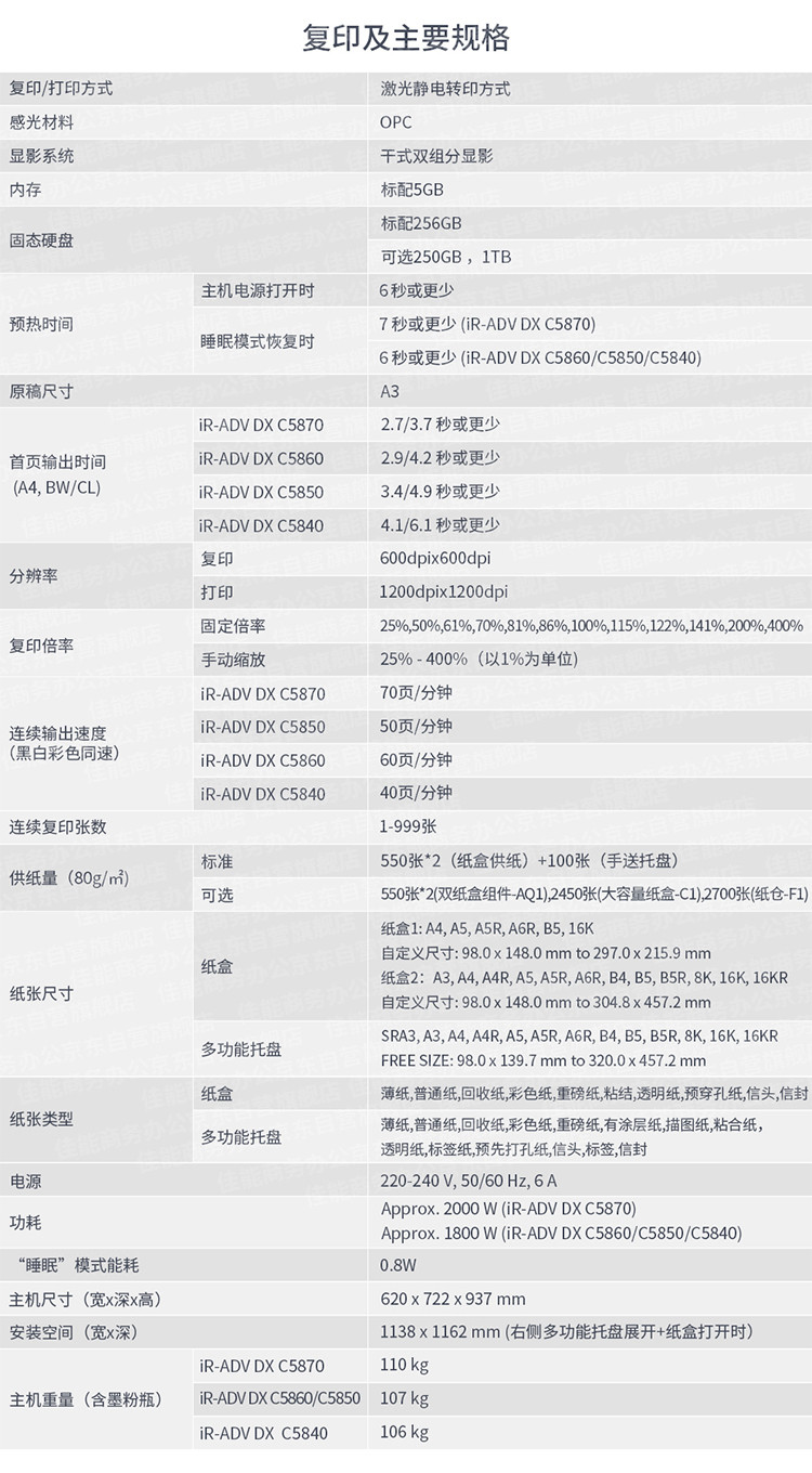 "佳能(CANON)iR-ADV C5870 A3彩色激光数码复合机(双面打印/复印/扫描/WiFi)含输稿器四纸盒"商品可能已被商家删除,您可查看其他相似商品!