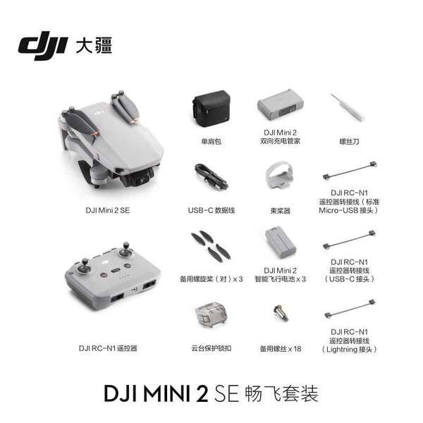 "大疆 DJI Mini 2 SE 畅飞套装 入门迷你航拍机 高清专业小型便携遥控飞机 长续航智能拍摄航拍器 大疆无人机"商品可能已被商家删除,您可查看其他相似商品!