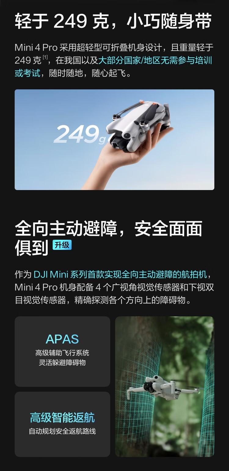 "大疆 DJI Mini 4 Pro 畅飞套装(带屏遥控器版)全能迷你航拍机 入门级无人机高清专业航拍+128G 内存卡"商品可能已被商家删除,您可查看其他相似商品!
