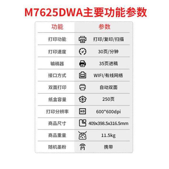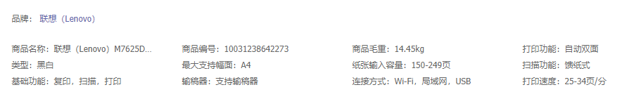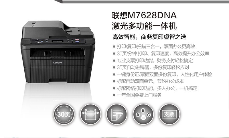 "联想(Lenovo) 黑白激光有线网络自动双面商务办公打印复印扫描多功能一体机M7625/7628 【无线款】M7625DWA双面/输稿器/多功能"商品可能已被商家删除,您可查看其他相似商品!
