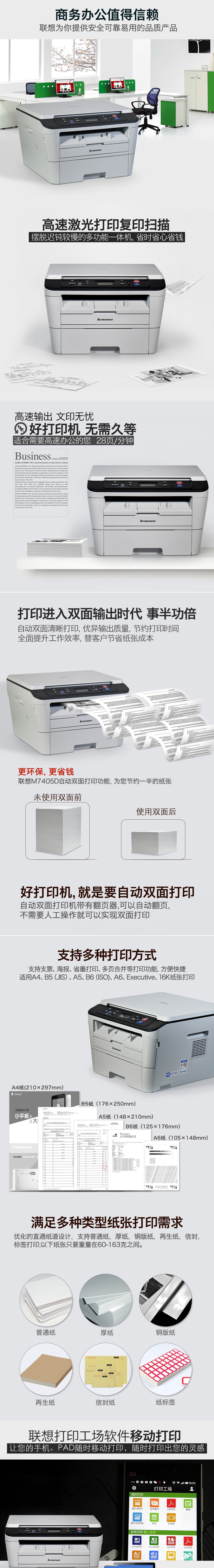 "联想(Lenovo) M7405d 7605dw 黑白激光无线自动双面A4多功能打印机复印扫描一体机 【USB】M7405D 自动双面/三合一"商品可能已被商家删除,您可查看其他相似商品!
