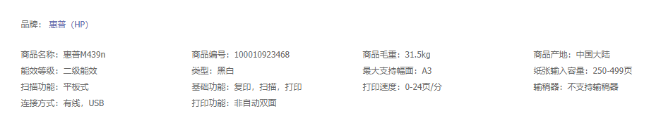 "惠普(HP)M439n A3数码复合机 专业打印 复印 扫描 437n升级型号"商品可能已被商家删除,您可查看其他相似商品!