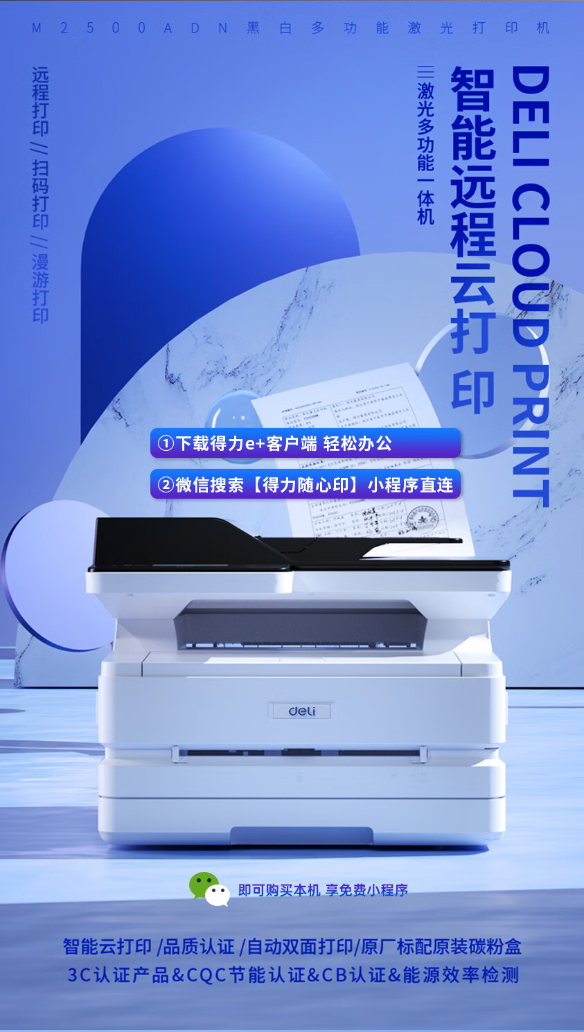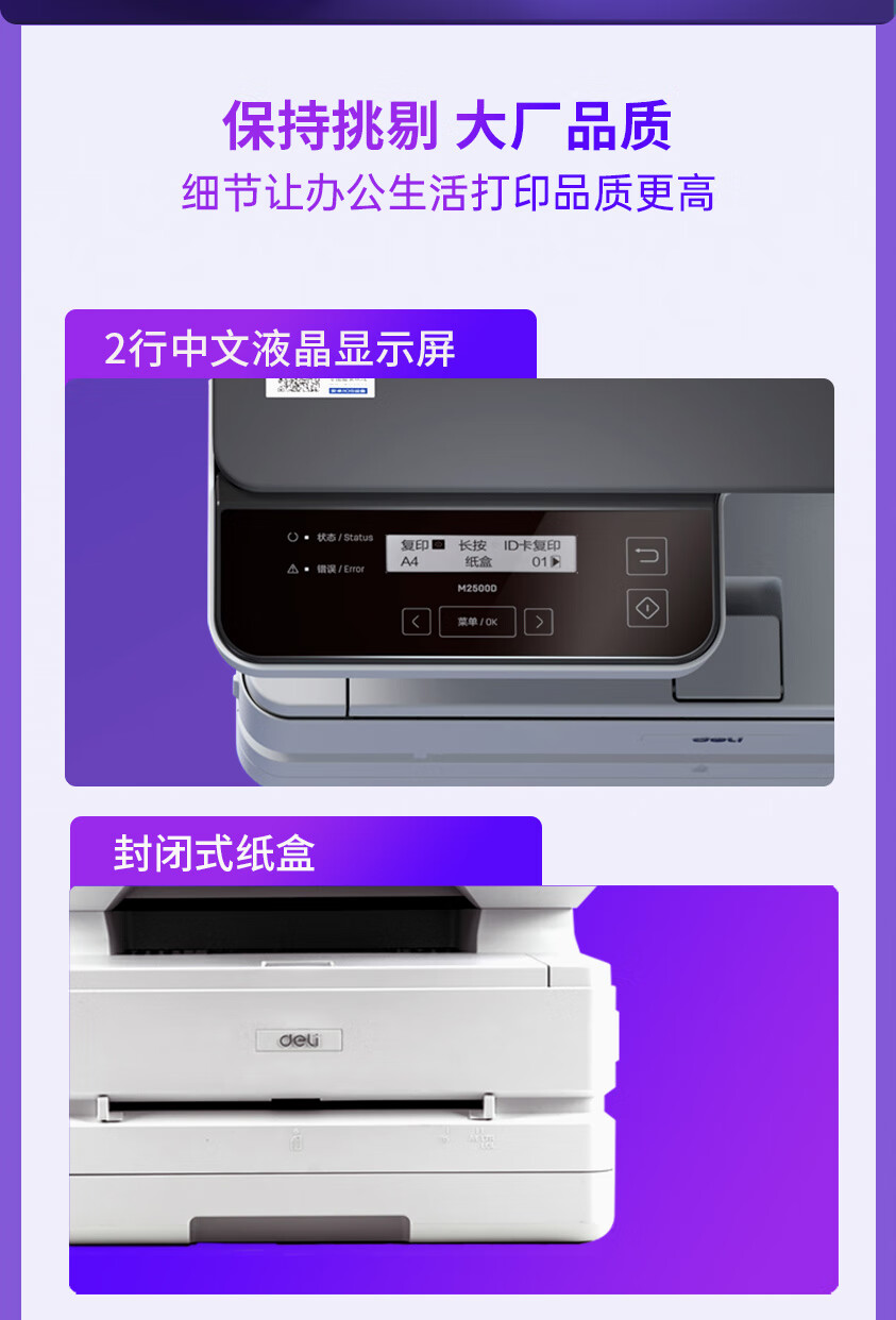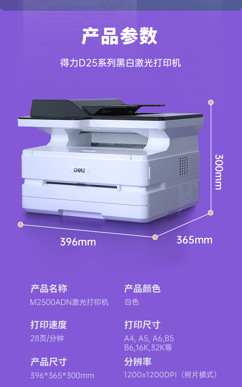 "得力(deli)M2500ADN 黑白激光三合一多功能一体机 ADF输稿 家用办公大容量打印机 (双面打印 复印 扫描)"商品可能已被商家删除,您可查看其他相似商品!