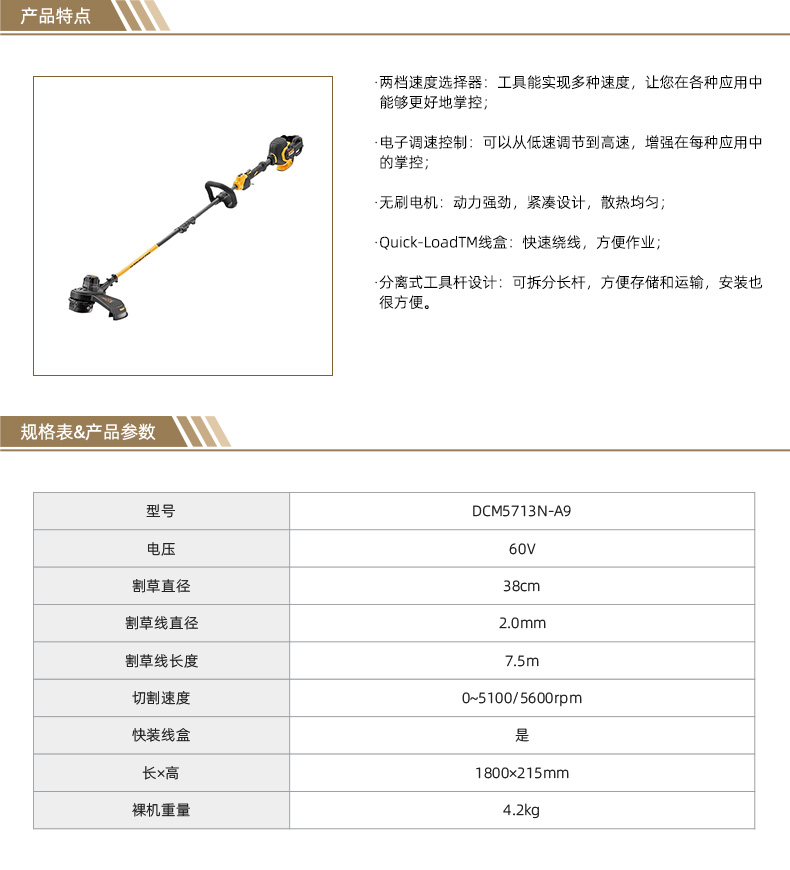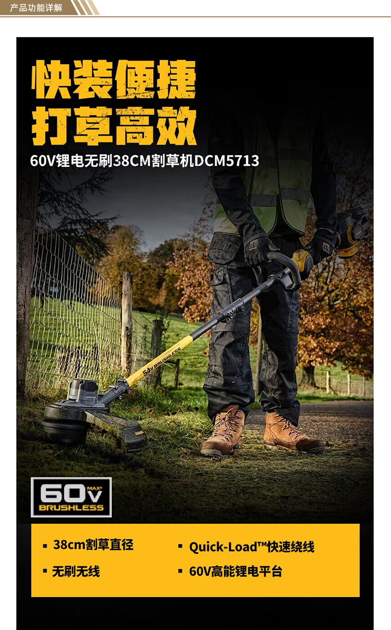 "60V锂电无刷38cm割草机 无电池及充电器 DCM5713N-A9 1把"商品可能已被商家删除,您可查看其他相似商品!