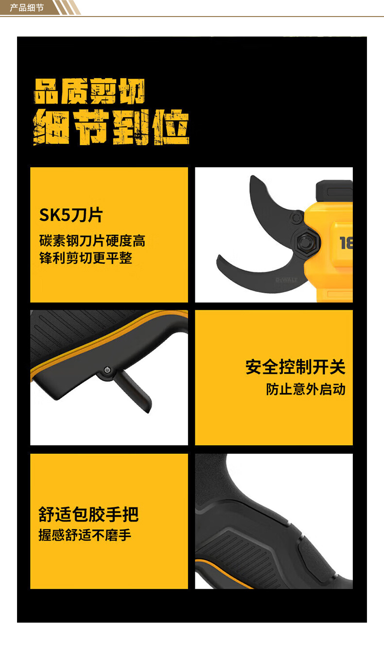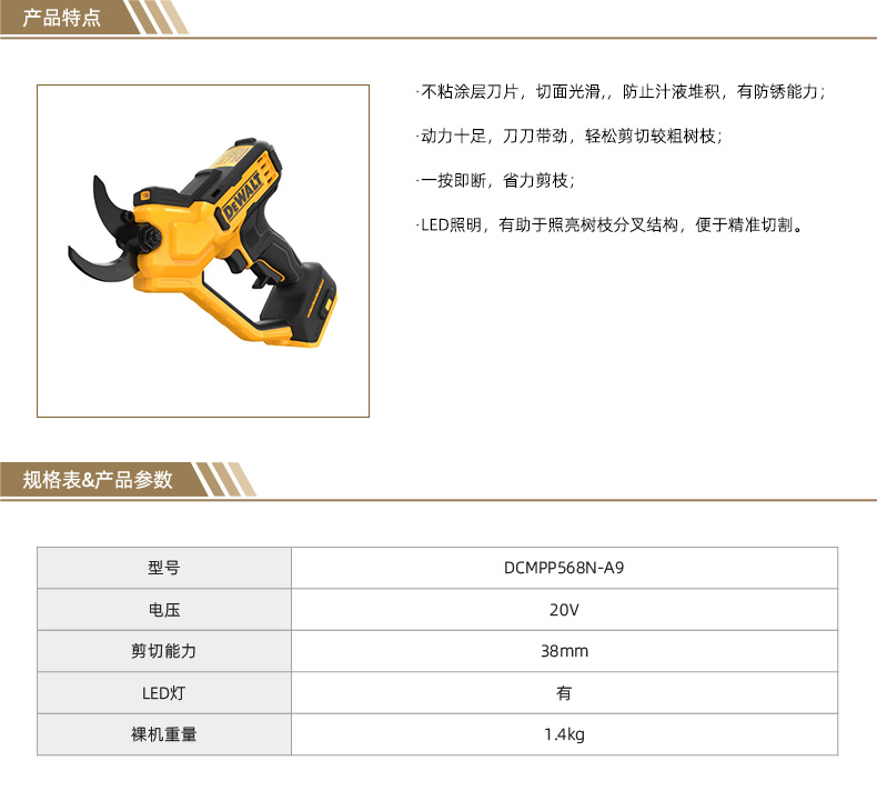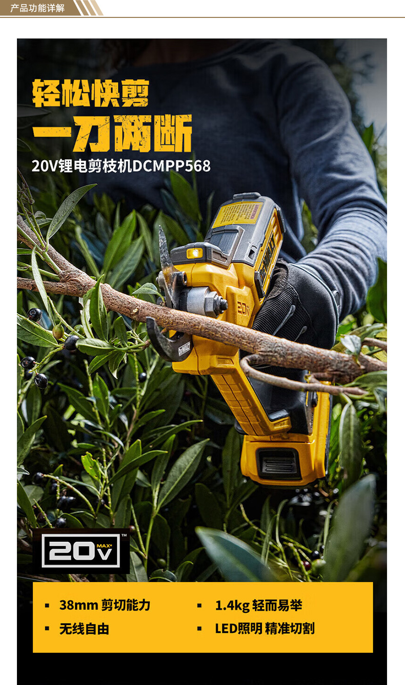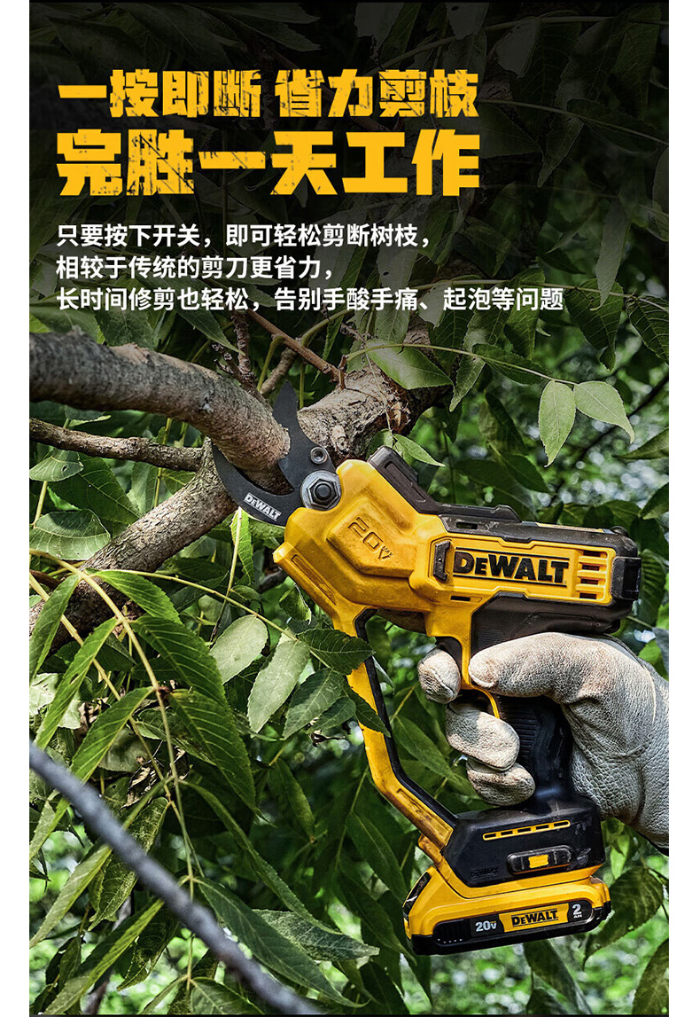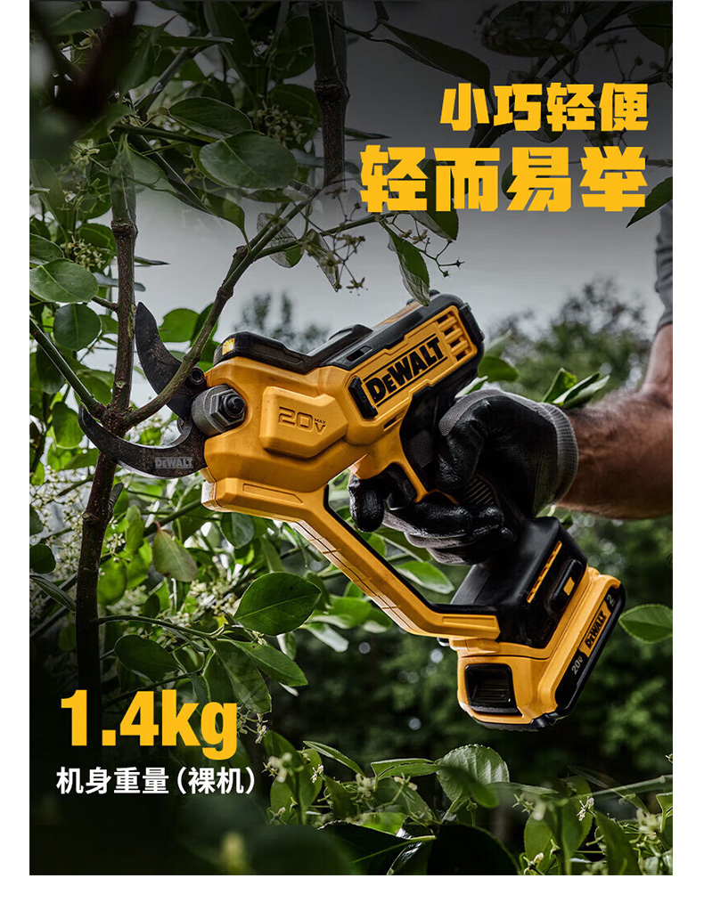 "20V锂电剪枝机 无电池及充电器 剪切能力38mm DCMPP568N-A9 1把"商品可能已被商家删除,您可查看其他相似商品!