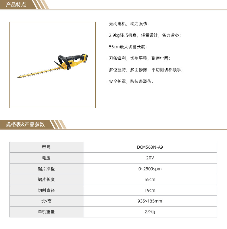 "20V锂电55cm 绿篱机 无电池及充电器 DCM563N-A9 1把"商品可能已被商家删除,您可查看其他相似商品!